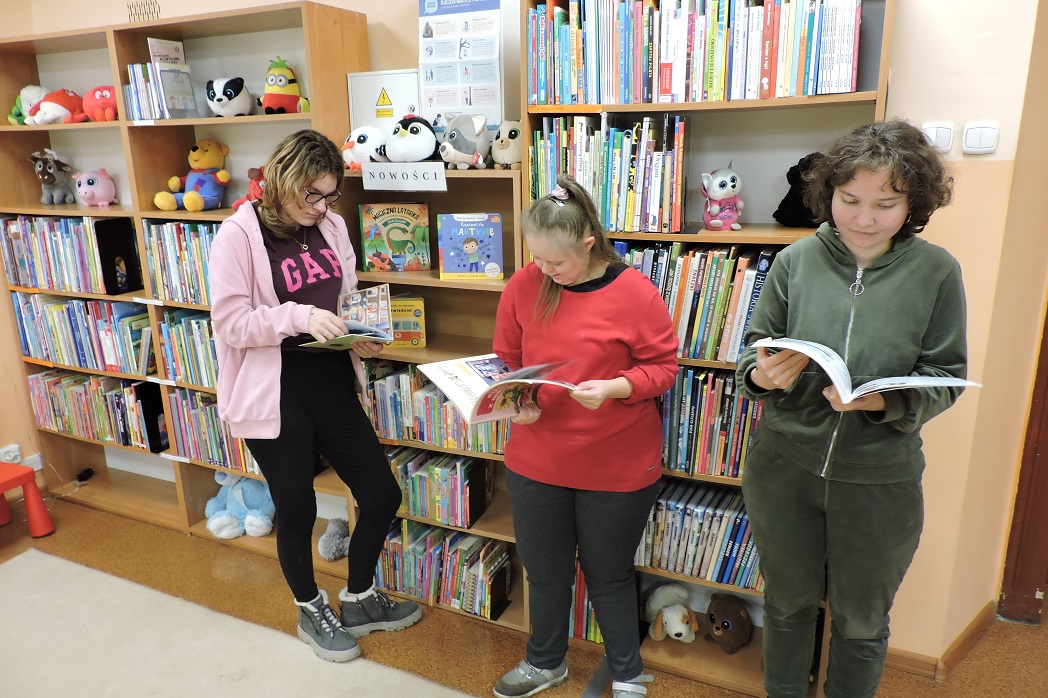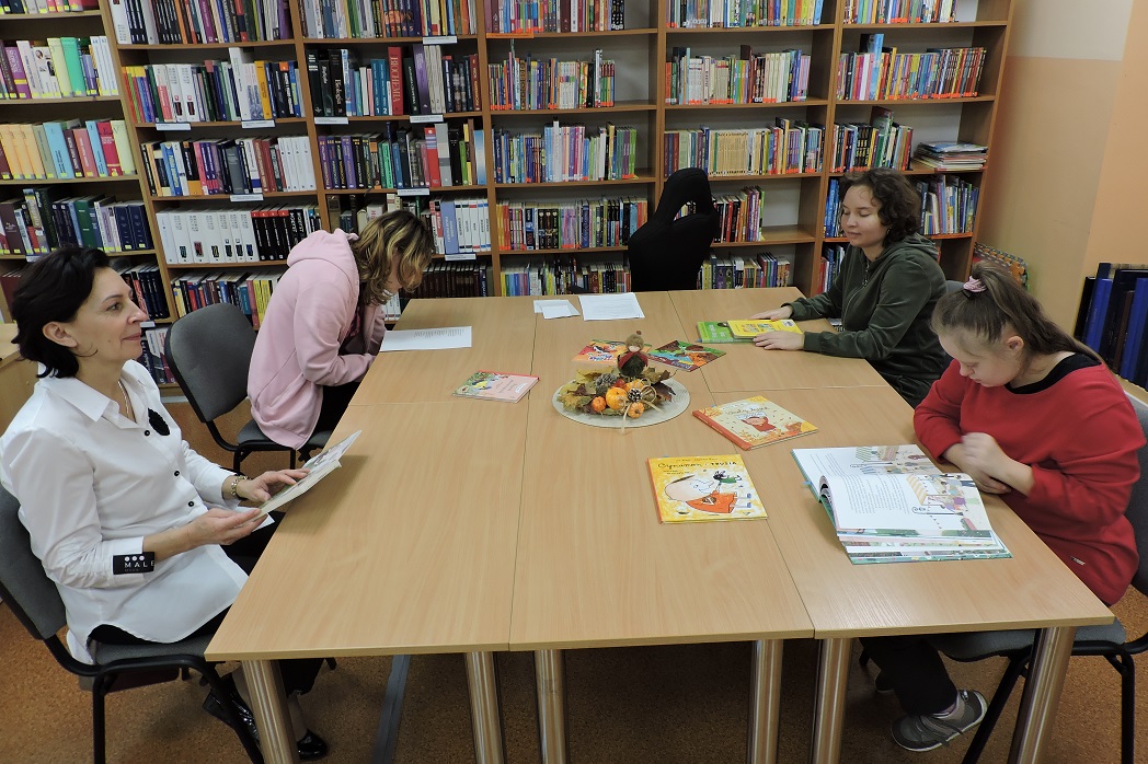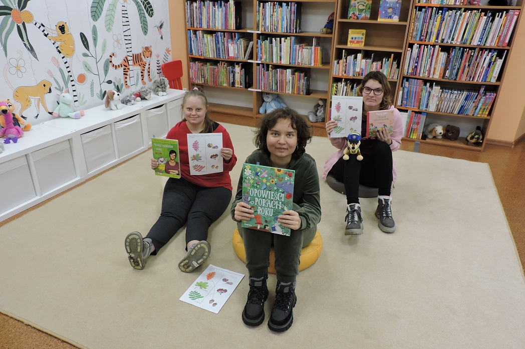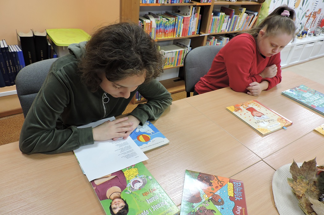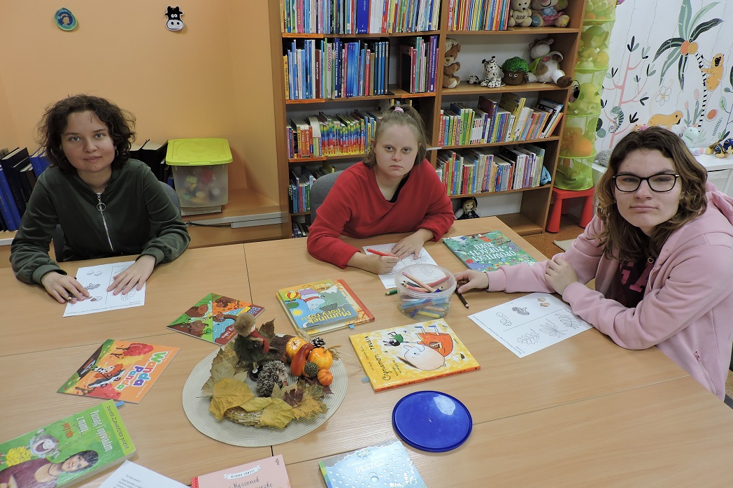 Młodzież ze Specjalnego Ośrodka Szkolno – Wychowawczego w Wągrowcu w ramach praktyk wspomaganych z zaangażowaniem uczestniczyła w jesiennych zajęciach. Najpierw wysłuchały zagadek o jesieni i z łatwością odgadywały, jakie dary niesie ta piękna pora roku. W kolejnej części spotkania naszą uwagę zajęły biblioteczne książki o zmieniających się porach roku, które charakteryzują się odmienną pogodą. Lektury czytaliśmy i oglądaliśmy z zainteresowaniem.