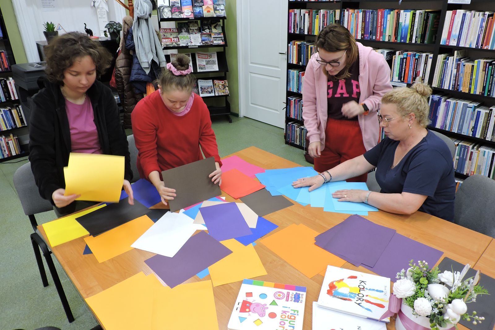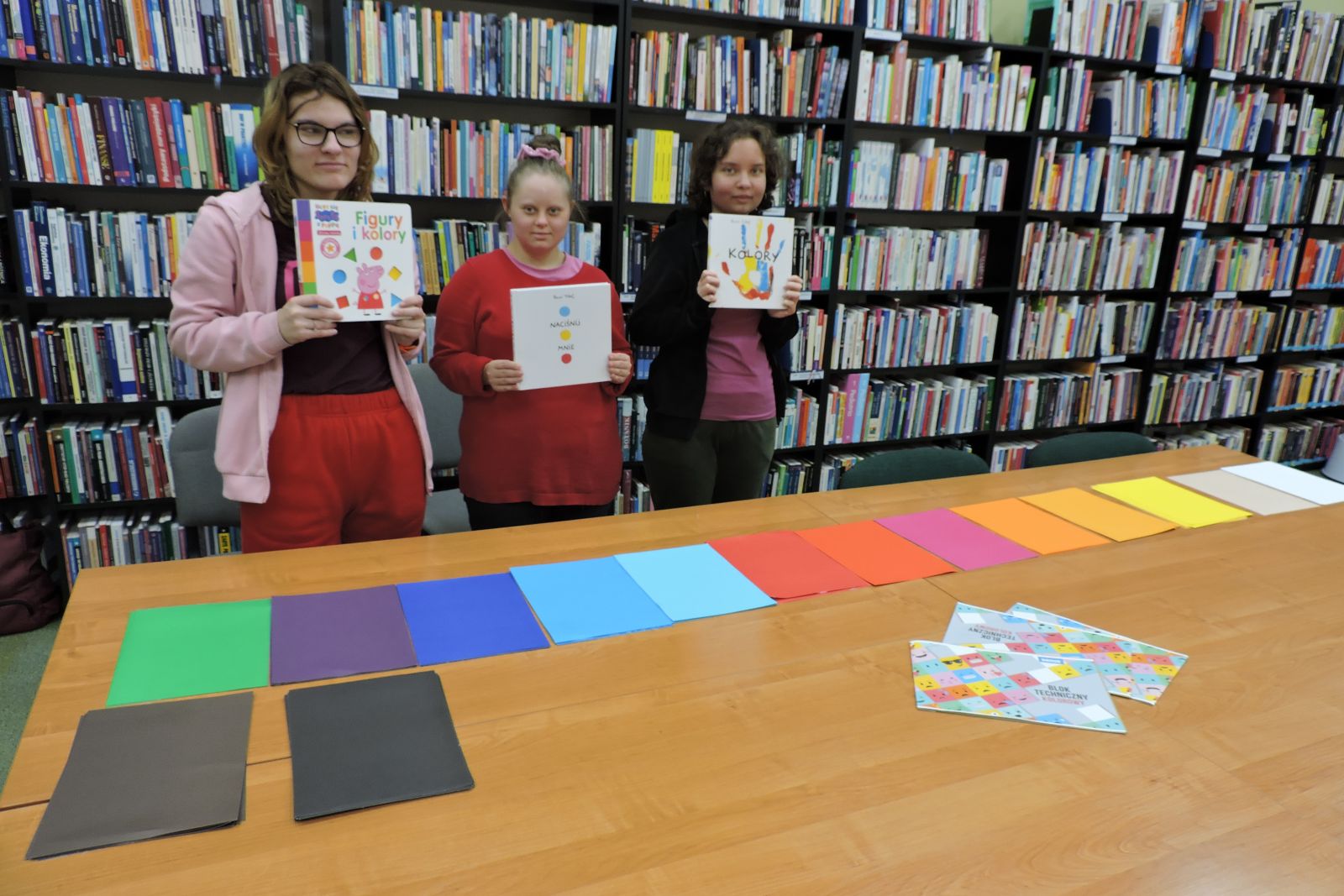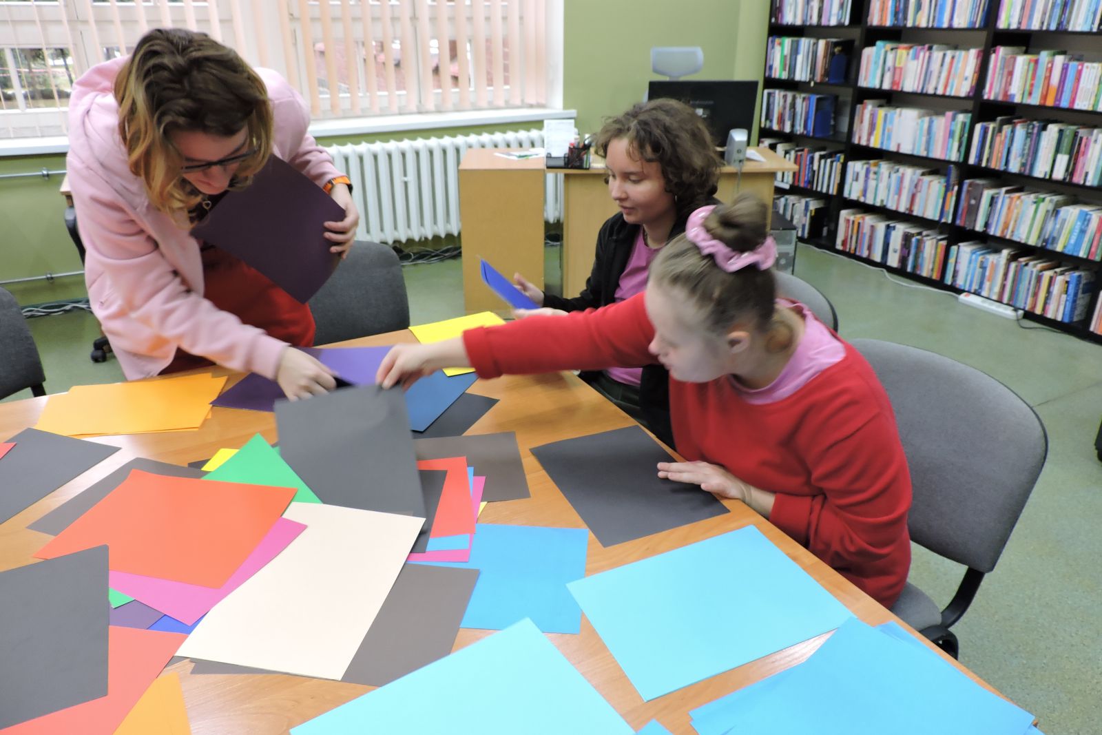 Dzisiaj na zajęciach młodzież ze Specjalnego Ośrodka Szkolno – Wychowawczego w Wągrowcu w ramach praktyk wspomaganych segregowała karty papieru według koloru i odcienia. Dziewczyny z zaangażowaniem przypisywały do danego koloru znane im owoce i warzywa. Jest to świetna zabawa utrwalająca wiedzę o barwach.
