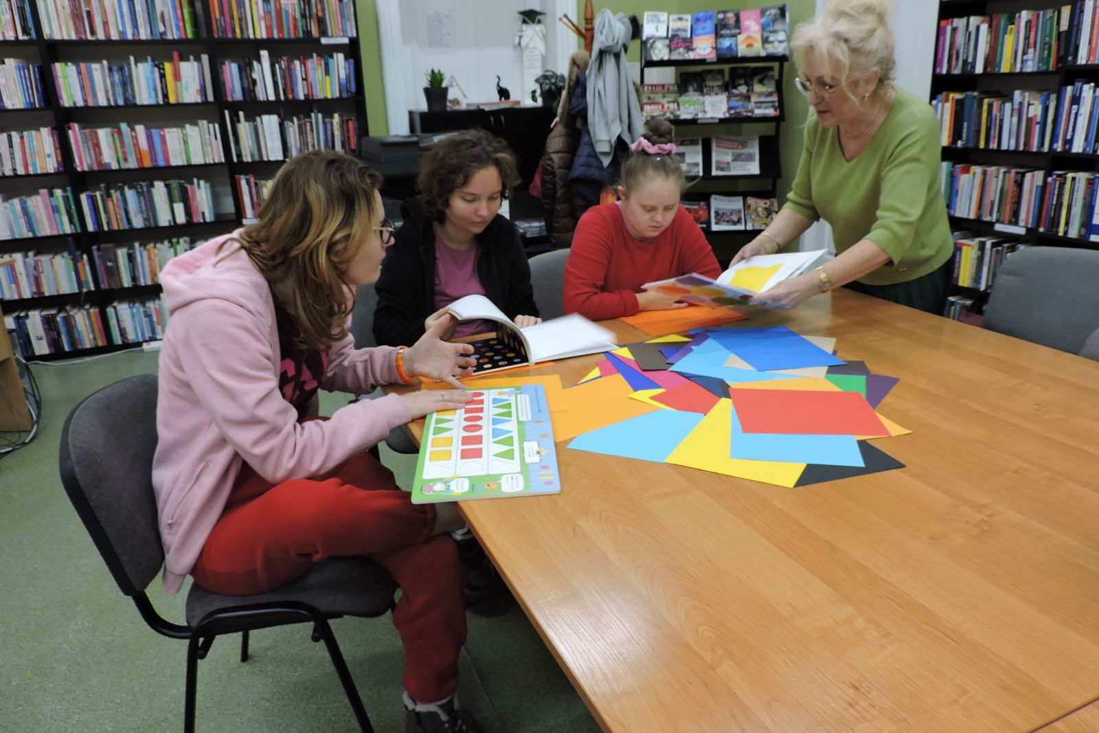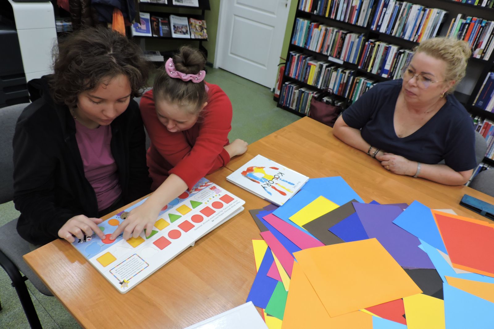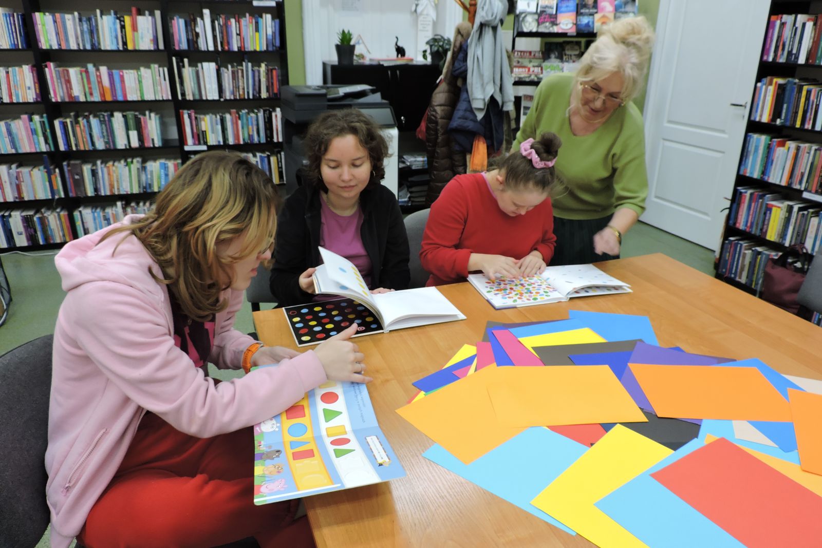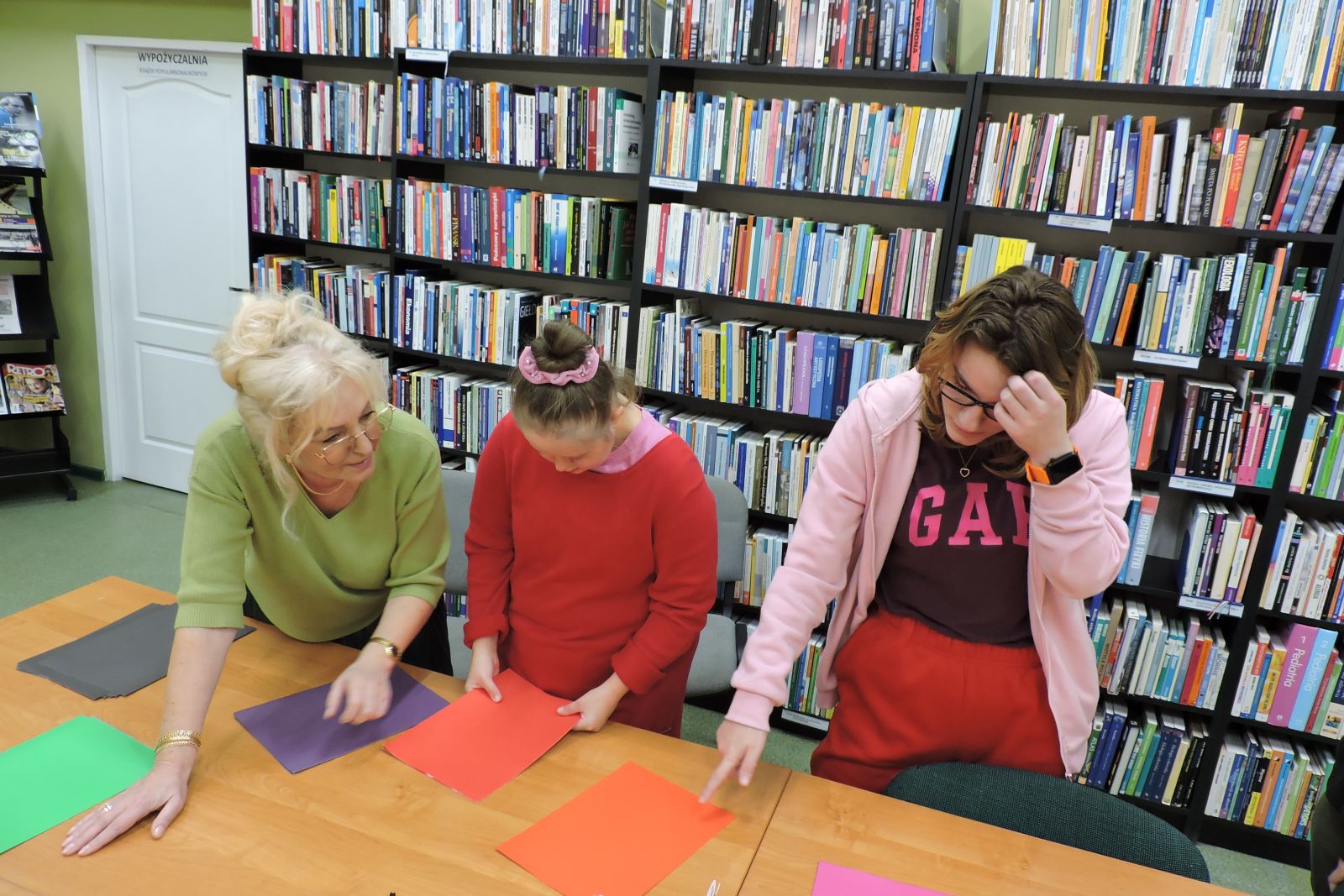 Dzisiaj na zajęciach młodzież ze Specjalnego Ośrodka Szkolno – Wychowawczego w Wągrowcu w ramach praktyk wspomaganych segregowała karty papieru według koloru i odcienia. Dziewczyny z zaangażowaniem przypisywały do danego koloru znane im owoce i warzywa. Jest to świetna zabawa utrwalająca wiedzę o barwach.
