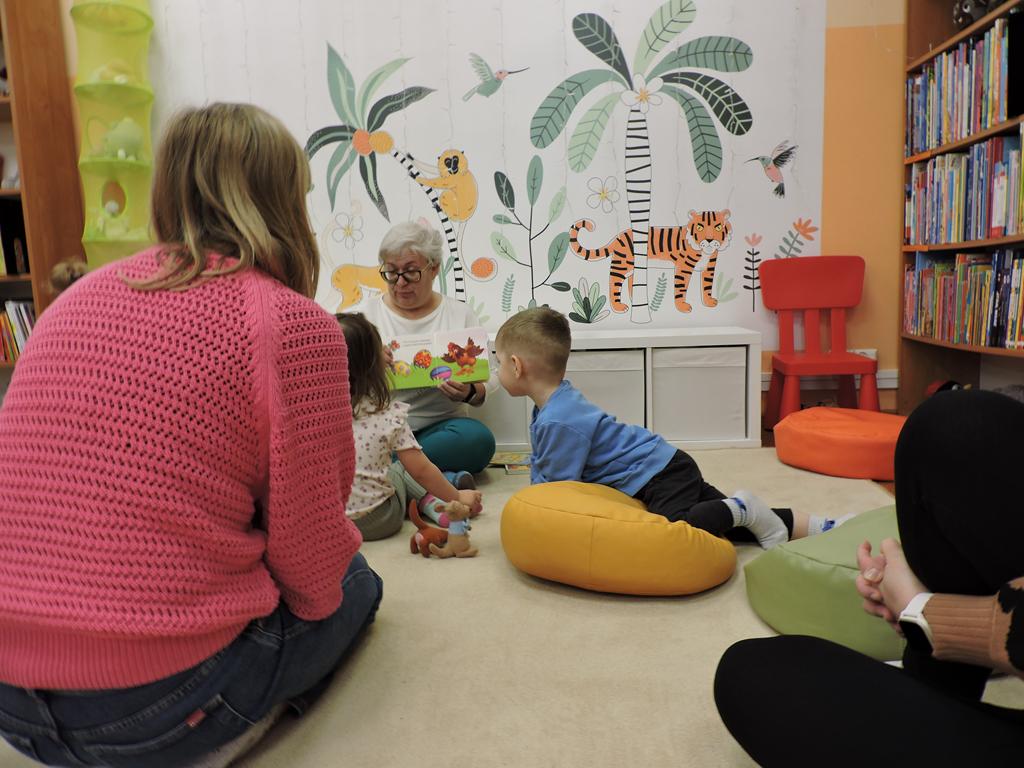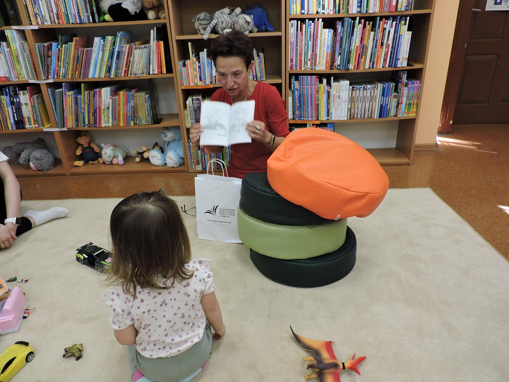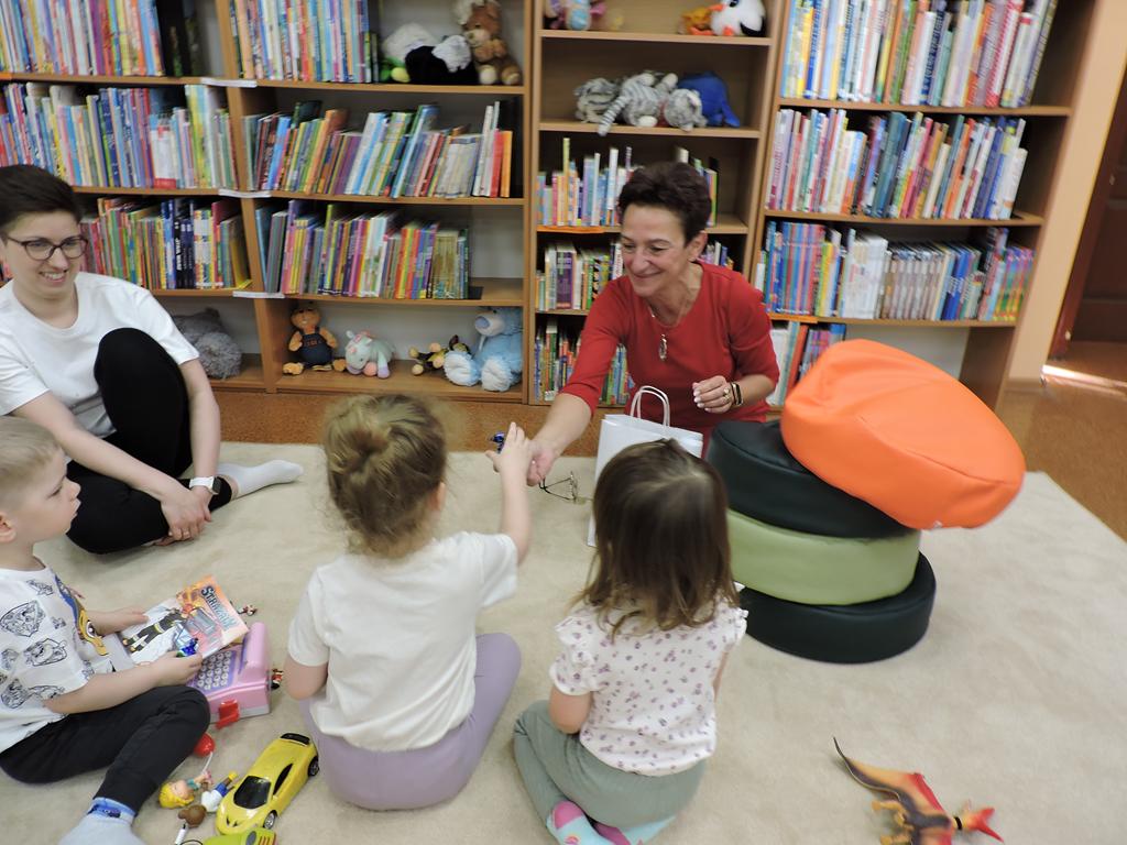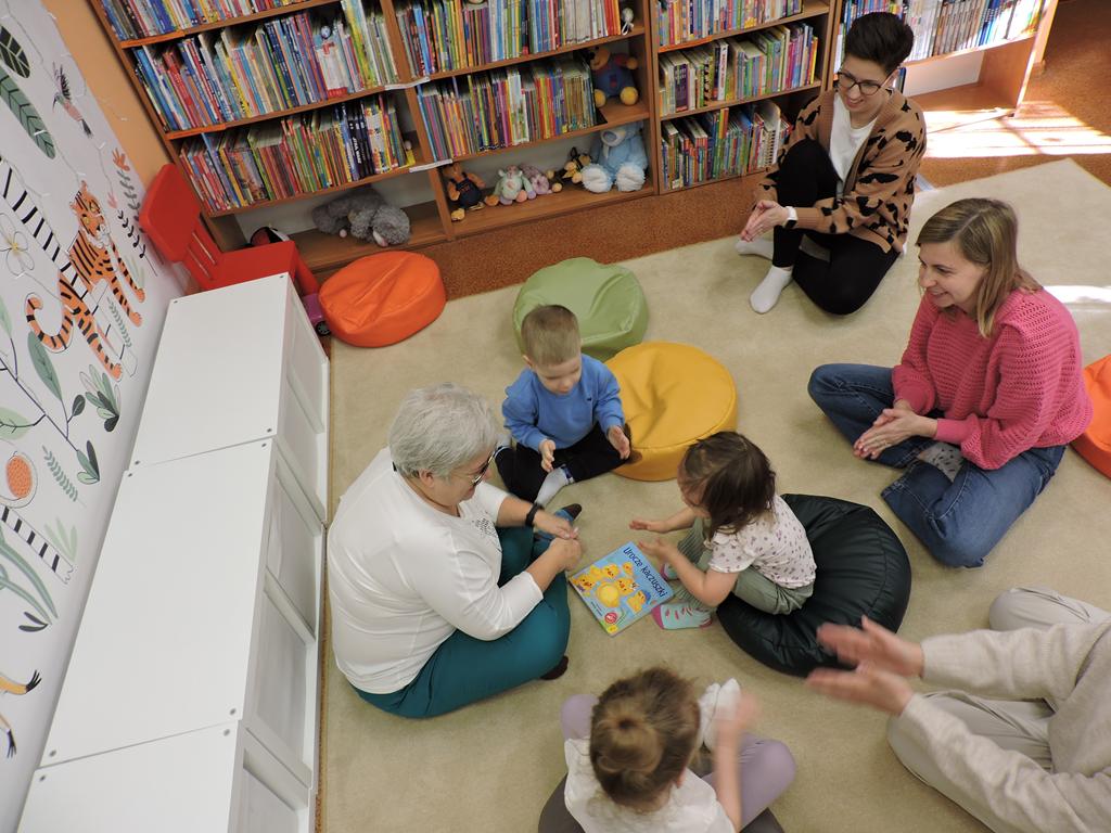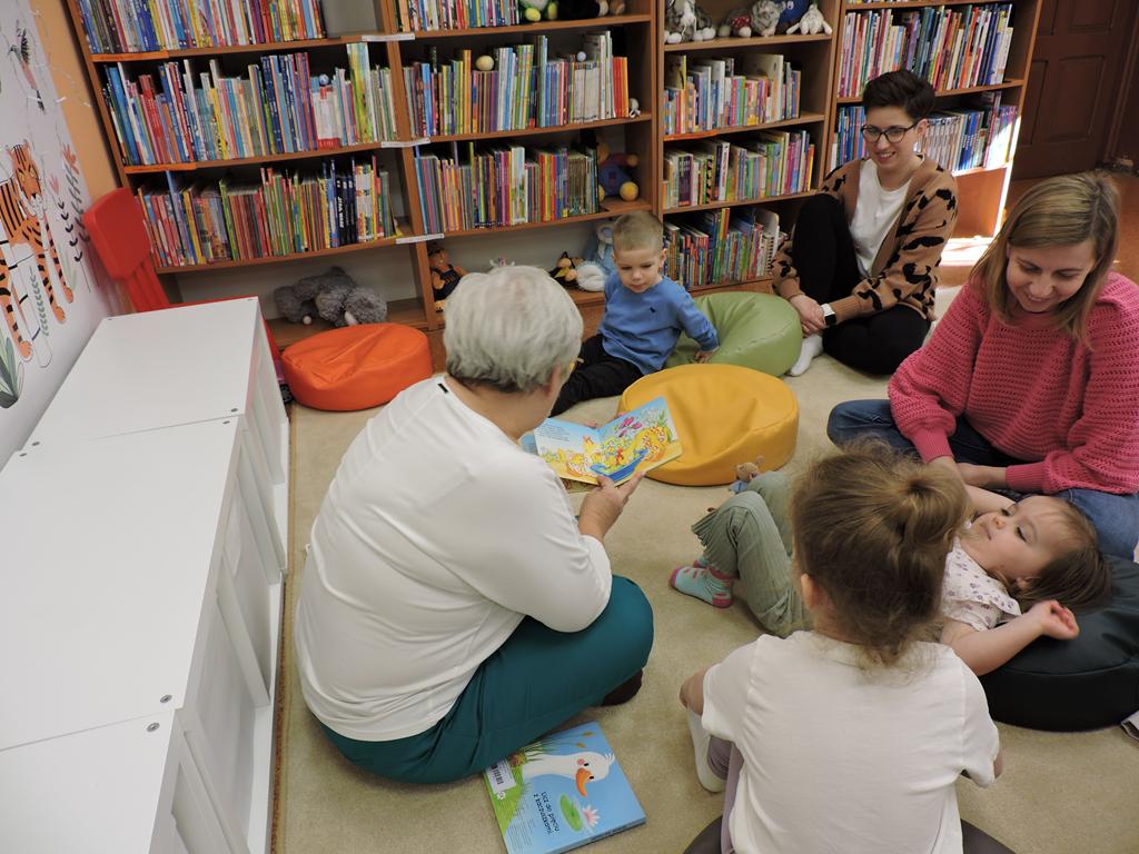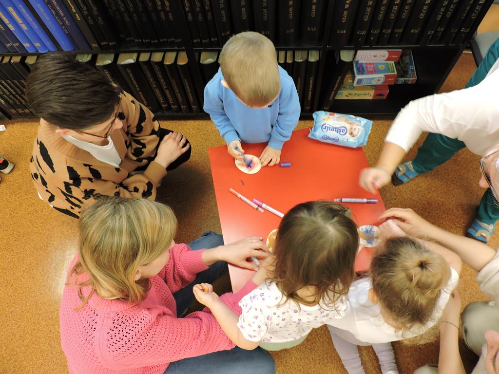 Na przedświątecznym spotkaniu Klubu Małego Czytelnika czytaliśmy dziś trzy książeczki: "Awanturka o jajka z wiejskiego podwórka" Urszuli Kozłowskiej, "Urocze kaczuszki" i "Trzy kaczuszki". Maluchy szukały też pisanek poukrywanych na bibliotecznych półkach, tańczyły oraz ozdabiały jajka.
