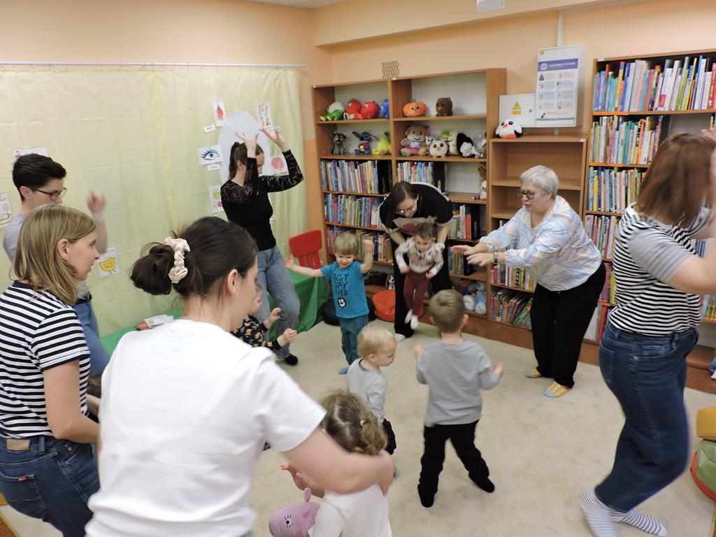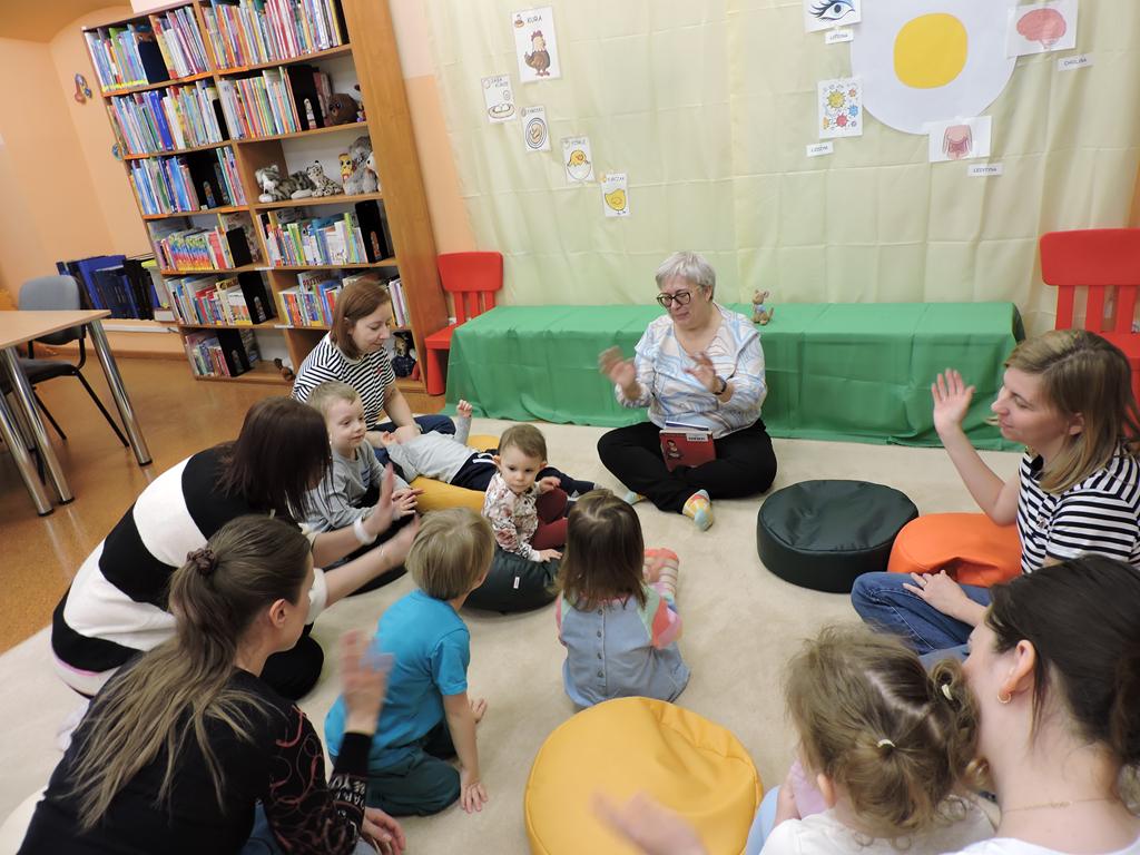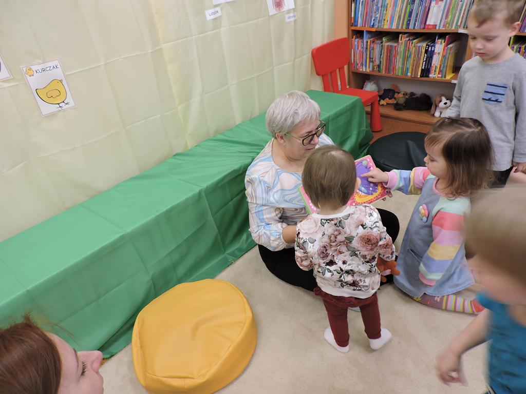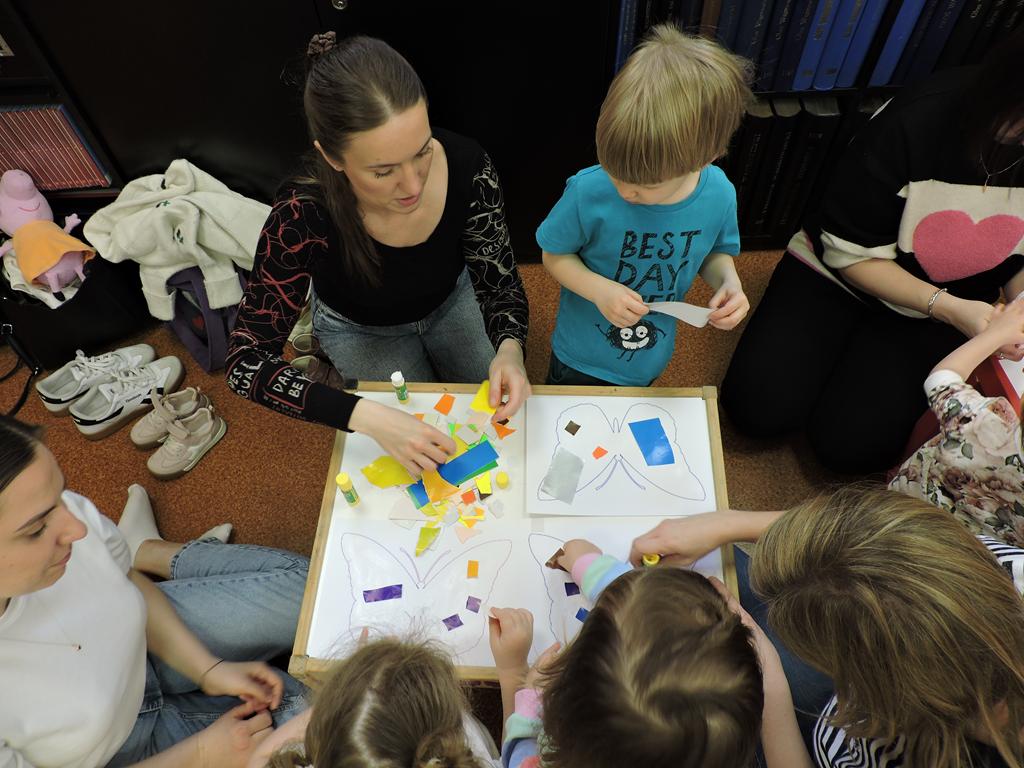 Po tradycyjnym przywitaniu wszystkich uczestników dzieci przy pomocy magicznego zaklęcia otworzyły dwie książki. Pierwszą z nich była „Łąka” gdzie zapoznały się z różnymi fakturami kartek, drugą „Trzy motylki”, którą przeczytały wspólnie z prowadzącą.